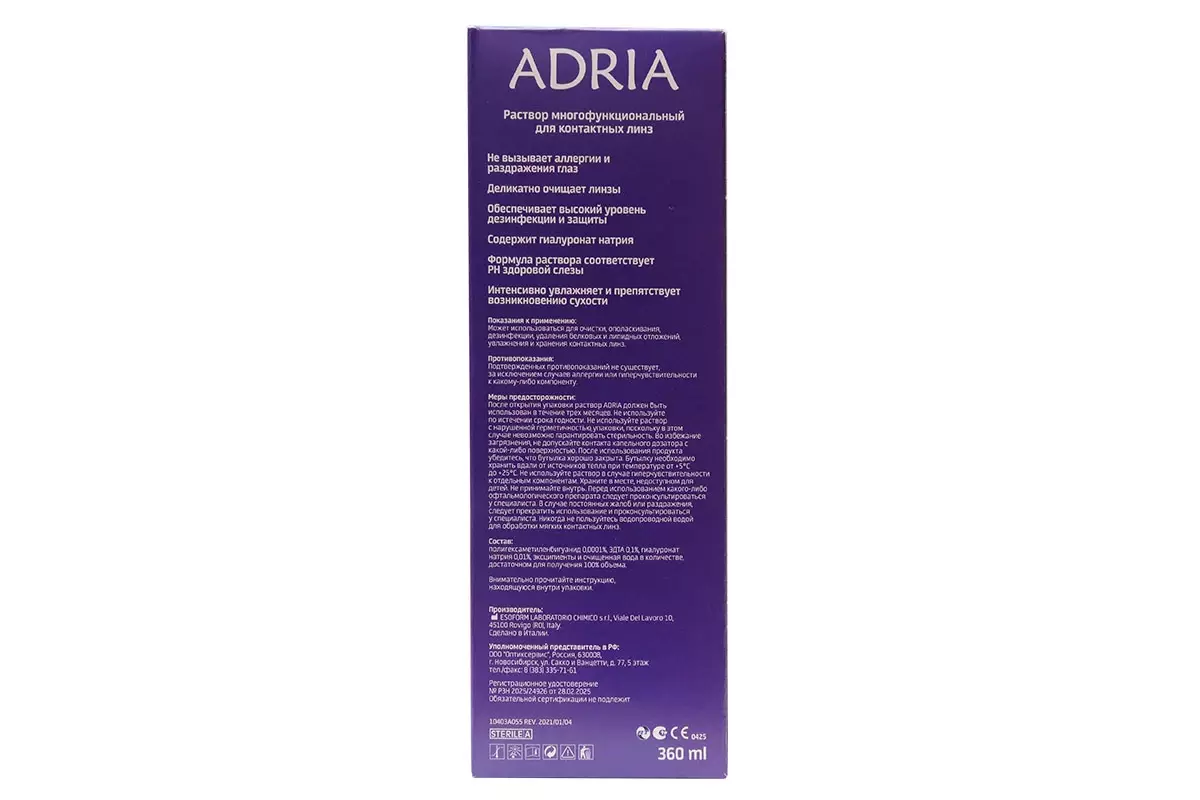 ADRIA — итальянский многофункциональный раствор, созданный для специального ухода за цветными и прозрачными контактными линзами ADRIA.