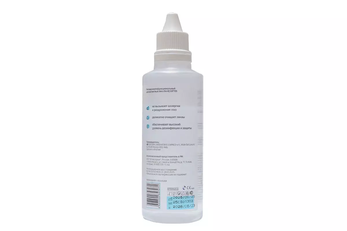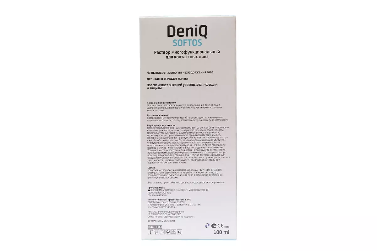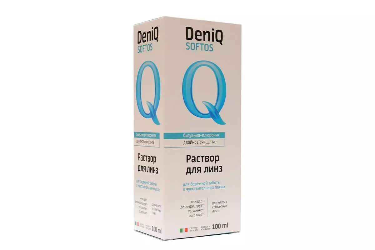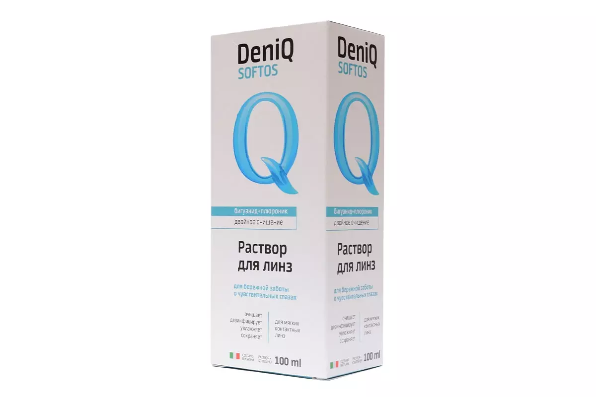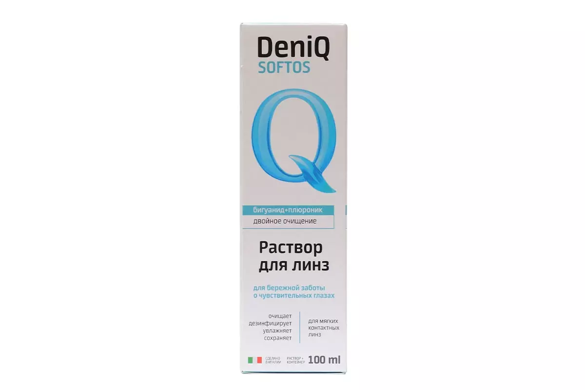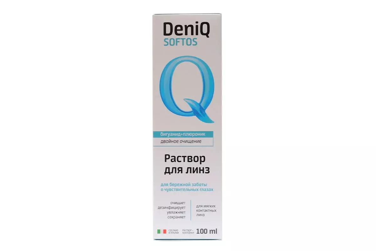 DenIQ Softos — итальянский многофункциональный раствор для ухода за всеми типами мягких контактных линз.
