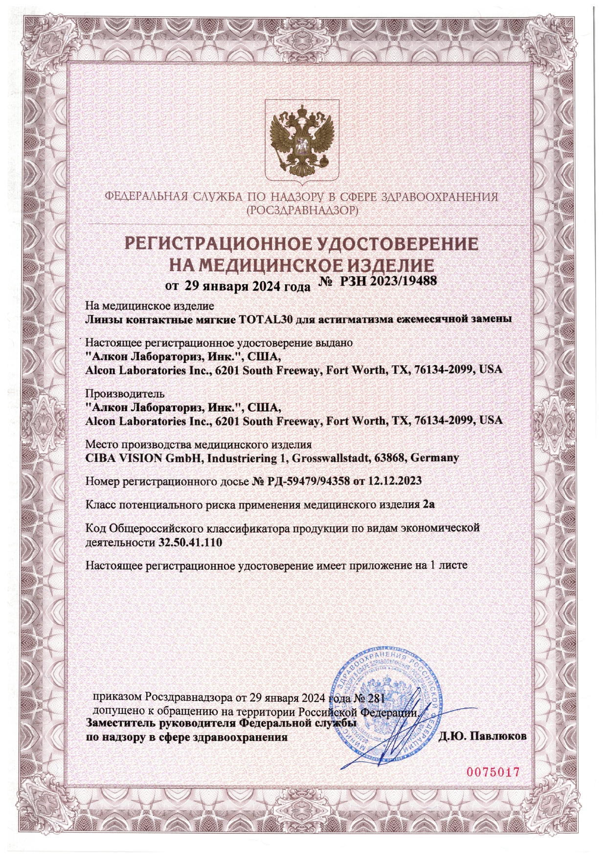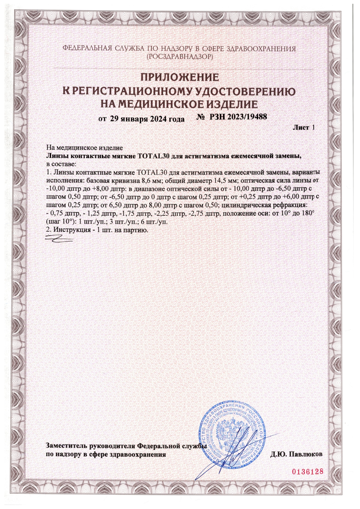Total 30 for Astigmatism — торические линзы плановой замены от бренда Alcon.