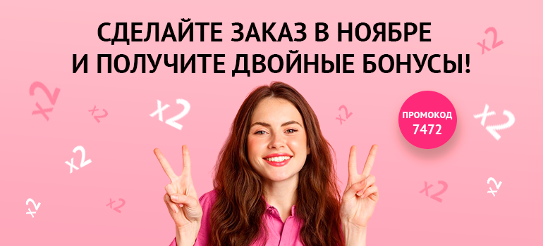 Удваиваем бонусы за любой заказ с применением промокода 7472